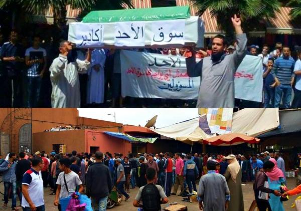 عرف سوق الأحد بمدينة أكادير ، إحتجاجات للتجار على ما وصفوه بـ ” فوضى ” الباعة الجائلين، الذين أغلقوا كل الممرات.