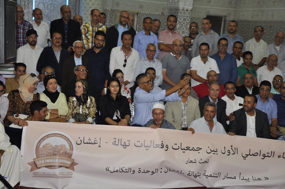 تحت شعار:” هنا يبدأ مسار التنمية بتهالة-اغشان :الوحدة والتكامل ” ،عقد بمدينة الدار البيضاء نهاية هذا الاسبوع السبت 23 شتنبر2017 ، لقاء تواصلي جمع العديد من الفعاليات الجمعوية والسياسية والاقتصادية بتهالة –اغشان دائرة تافراوت اقليم تزنيت ،على راسها السيد ادريس بوعلام رئيس المجلس الجماعي اريغ ن تهالة والسيدة زينب بوشامان المستشارة الجماعية .