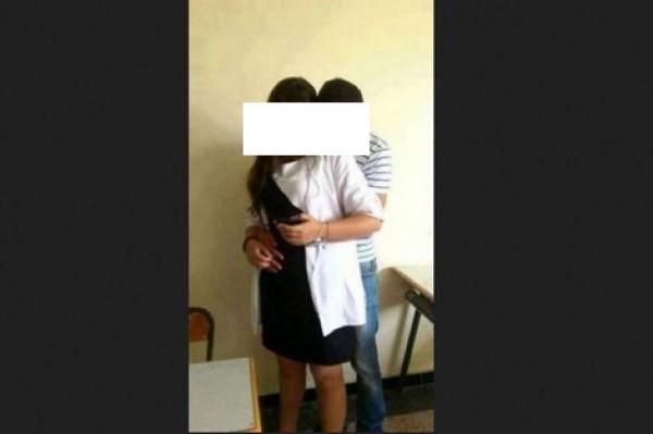 طردت ثانوية بمدينة مكناس تلميذة بقسم الباكلوريا بعد ضبطها وزميلها وهما يتبادلان القبل داخل حجرة دراسية ، من طرف ٱستاذتهما وبعض التلاميذ، في فترة الاستراحة،كما قررت الإدارة معاقبة زميلها بتغيير المؤسسة.