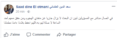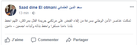 بعدما أعلن سعد العثماني من خلال تدوينة أنه تم القبض على الجناة في جريمة مراكش التي راح ضحيتها المسمى قيد حياته “حمزة ش” ، بعدما أصيب بطلق ناري في الرأس بإحدى المقاهي بالحي الشتوي، عاد وأعلن من خلال تدوينة أخرى أن البحث لا زال جاريا لإيقاف الجناة، وأن من تم توقيفه لا علاقة لهم بالحادث.
