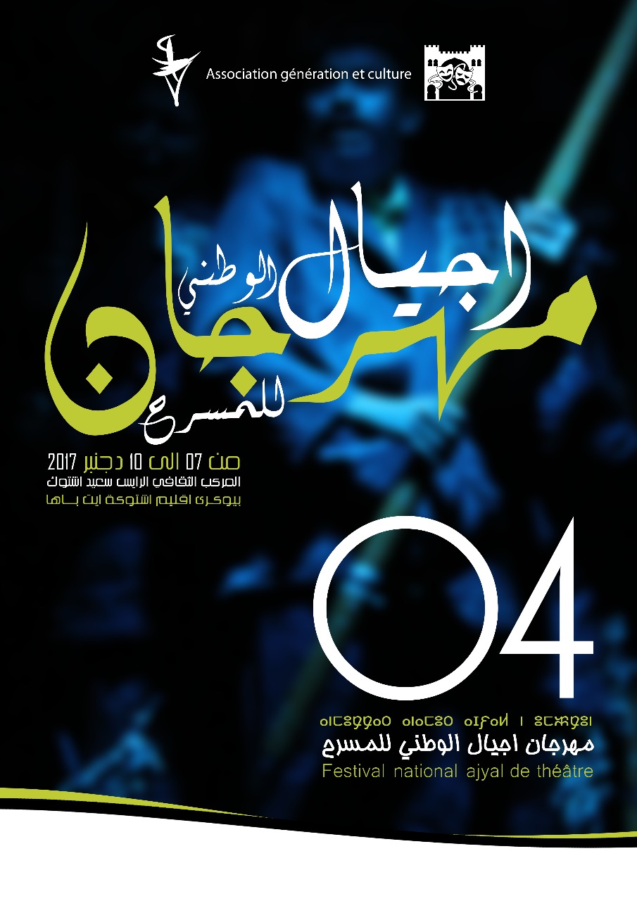 أعلنت إدارة مهرجان ” أجيال الوطني للمسرح ” ، عن الموعد الرسمي المقرر لانطلاق فعاليات الدورة الرابعة للمهرجان ، والذي سيقام حفل افتتاحه يوم الخميس 07 دجنبر 2017 ، بمدينة بيوكرى ، حاضرة إقليم اشتوكة أيت باها.