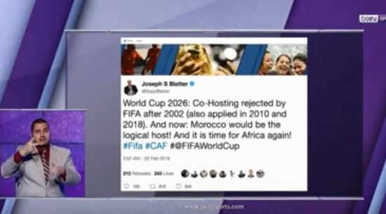 بلاتر يساند المغرب ويتنبأ بتنظيمه كأس العالم 2026 نشر في 23 فبراير 2018 الساعة 23 و 38 دقيقة شارك FacebookWhatsAppTwitterالبريد الإلكترونيLinkedinطباعة شارك FacebookWhatsAppTwitterالبريد الإلكترونيLinkedinطباعة