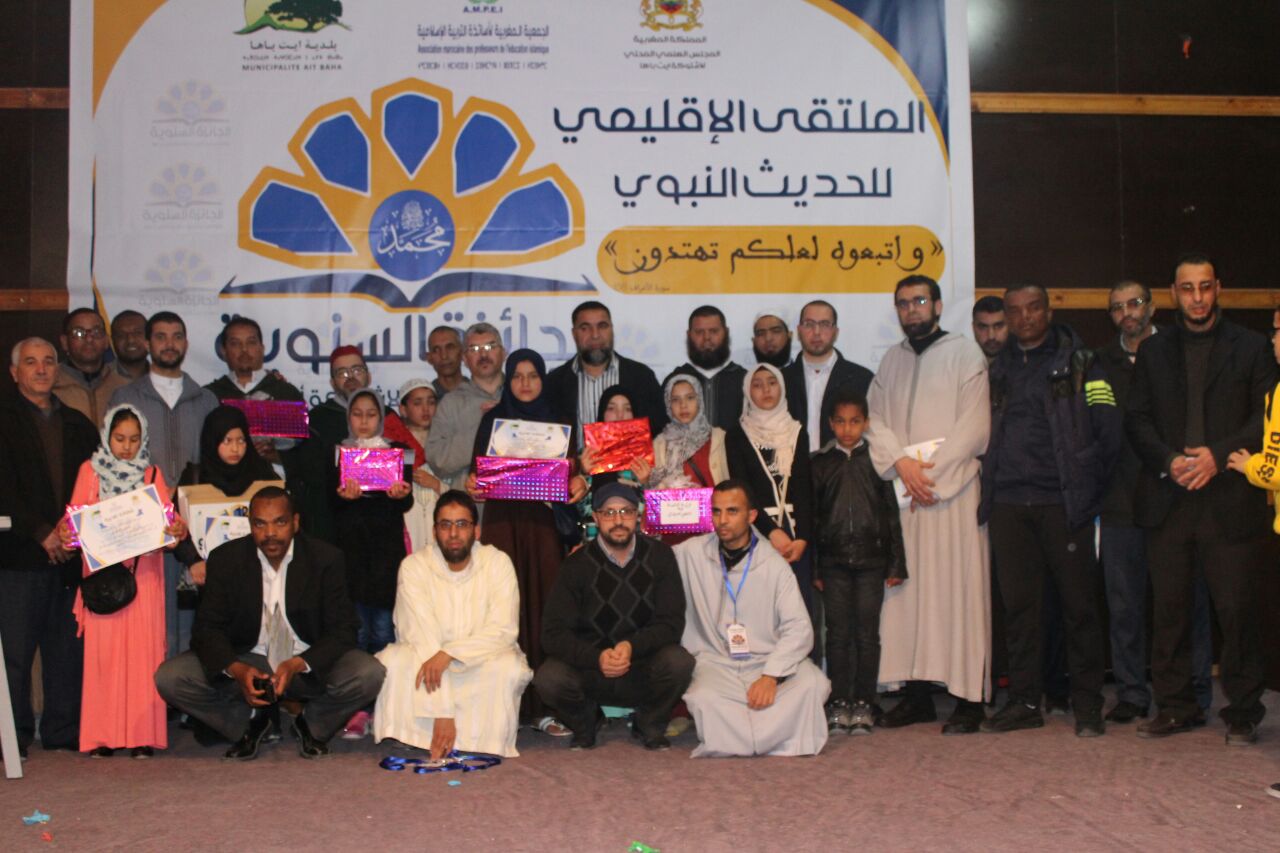 اسدل الستار امس الاحد 18 مارس 2018 بمدينة بيوكرى عن النسخة السابعة من الجائزة السنوية لحفظ الحديث النبوي الشريف التي نظمتها الجمعية المغربية لاساتذة التربية الاسلتمية فرع شتوكة ايت باها والمجلس العلمي المحلي لاشتوكة ايت باها بشراكة مع الجماعة الترابية لايت باها تحت شعار :”واتبعوه لعلكم تهتدون “، بتويج الفائزات والفائزبن خلال حفل نظم على شرفهم بقاعة دار الشباب محمد بوردو بحضور عشرات الآباء والامهات والمربين والتلاميذ . وكانت النتائج قد اسفرت عن تتويج التلميذة نهيلة المكناسي – من الثانوية الاعدادية حمادي مبارك – عن فئة ذوي الاحتياجات الخاصة؛ والتلميذة هاجر بوكضيد من الثانوية الاعدادية العربي الشتوكي عن فئة التعليم الثانوي بسلكيه ،والتلميذة مريم الظريفي بمدرسة ادوز اسعود عن فئة التعليم الابتدائي ،والتلميذ رضوان مماس عن فئة التعليم العتيق .