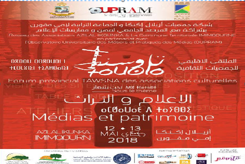 في إطار برنامجها السنوي ، شبكات أزيلال ايكونكا بدعم من الجاعة الترابية لامي مقورن و بشراكة مع المرصد الجماعي لمهن وممارسات الاعلام تنظيم ملتقى تاوسنا الاقليمي للجمعيات الثقافية في دورته الثانية تحت شعار الاعلام و التراث و دللك يومي 12 و 13 ماي 2018 بأزيلال اكنكا .