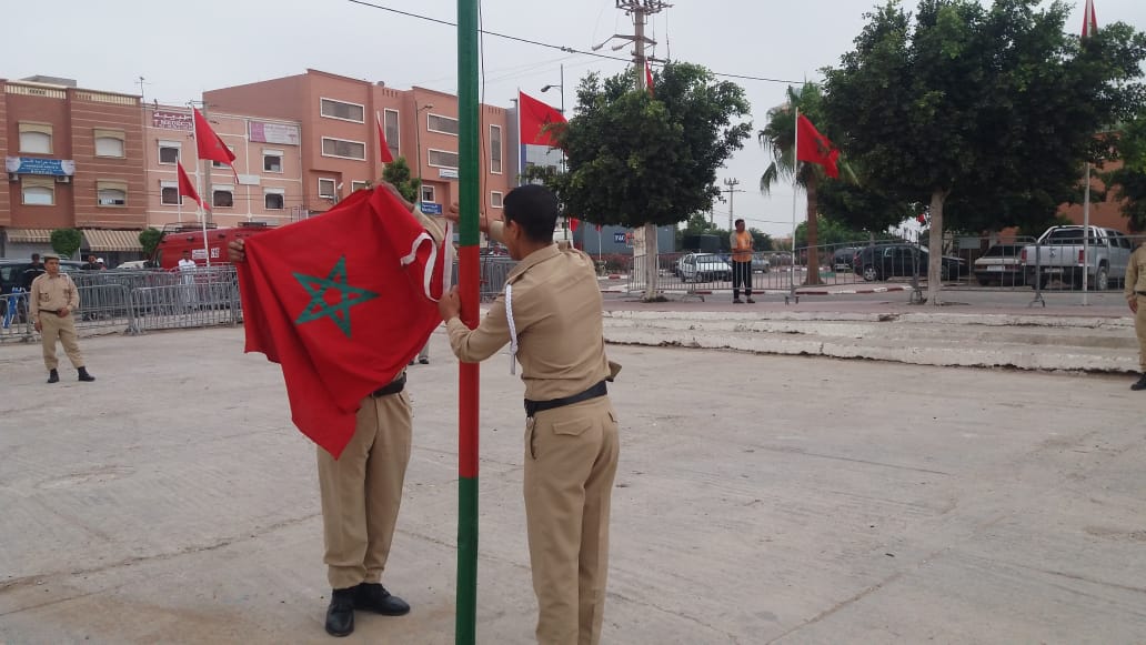 في إطار احتفالات الشعب المغربي بمناسبة الذكرى الـ 19 لتربع صاحب الجلالة الملك محمد السادس نصره الله على عرش أشلافه الميامين، ترأس باشا سيدي بييبي، مراسيم تحية العالم تخليد لذكرى عيد العرش استعراض من خلالها بروتوكول،قامت به فرقة تابعة للقوات المساعدة .