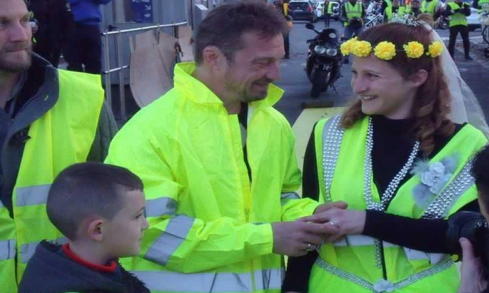 أقدم ناشطين من “احتجاجات السترات الصفراء” على عقد قرانهما واشهار زواجهما أثناء التظاهرات الاحتجاجية التي شهدتها فرنسا نهاية الأسبوع الماضي.