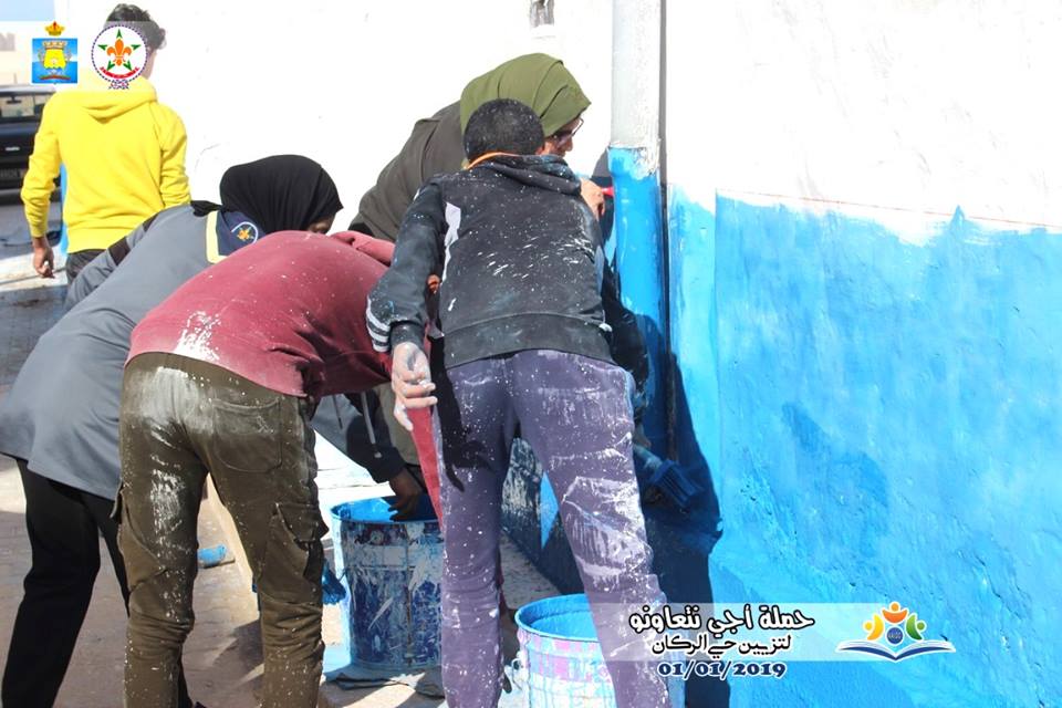 كما كان مبرمجا في إطار حملة أجي نتعاونوا لتزيين حي الركان المنظمة من طرف جمعية مستقبل إخربان للتنمية و التعاون بدعم من المجاس الجماعي لماسة و بتعاون مع جمعية الكشفية الحسنية المغربية فرع ماسة ، إنطلقت يوم أمس الثلاثاء فاتح يناير 2019 أنشطة الحملة بتزيين الزنقة الوسطى بحي الركان حيث تمت صباغة الجدران و كذا تنظيف كلي للشارع مع توزيع مزهريات على كل المنازل المستفيدة.