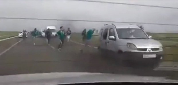أظهرت صور و فيديوهات انتشرت على مواقع التواصل الإجتماعي “الفيس بوك” اعمال شغب بين أنصار فريق الرجاء البيضاوي و الجيش الملكي على الطريق السيار الرابط بين مراكش و البيضاء على مستوى منطقة بنجرير ما تسبب في عرقلة حركة السير.