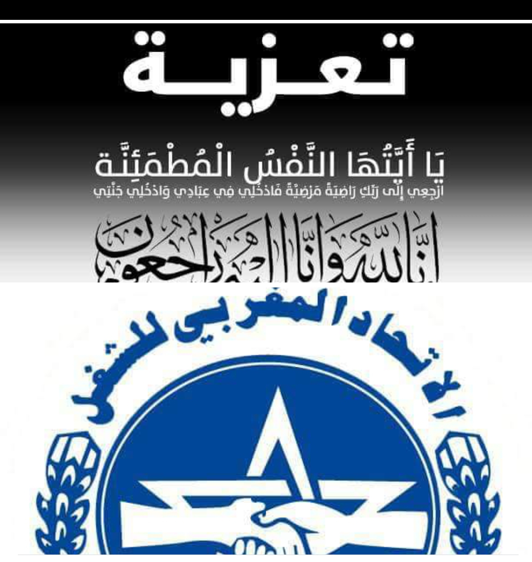ببالغ الأسى والحزن وبقلوب مؤمنة بقضاء الله وقدره، تلقينا خبر وفاة والد الأستاذ محمد بن محند مكون بالمعهد المتخصص للتكنولوجيا التطبيقية بيوكرى، وبهذه المناسبة الأليمة يتقدم الإتحاد المغربي للشغل لجهة سوس ماسة، بأحر التعازي وصادق المواساة للأستاذ محمد بن محند وأفراد أسرته وعائلته وجميع أصدقائه في هذا المصاب الجلل، أملين أن يتغمده الله بواسع رحمته ومغفرته ورضوانه، ويسكنه فسيح جناته ويلهم ذويه وأهله الصبر والسلوان.