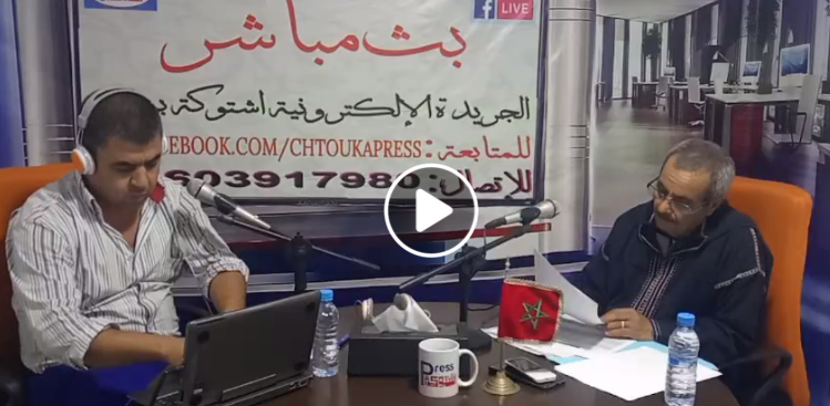 حوار مباشر مع رئيس جماعة سيدي عبد الله البشواري نشر في 29 نوفمبر 2019 الساعة 19 و 43 دقيقة شارك FacebookWhatsAppTwitterالبريد الإلكترونيLinkedinطباعة https://www.facebook.com/chtoukapress/videos/3006459262697891/ شارك FacebookWhatsAppTwitterالبريد الإلكترونيLinkedinطباعة