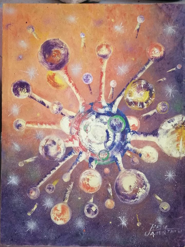 1* حنان بسعد من ايت ملول بلوحة تشكيلية تحمل عنوان هروبا من بحر الوباء