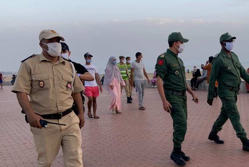 وعاينت الجريدة انتشار أفراد من السلطة المحلية يتقدمهم قائد الملحقة وخليفته المكلف بمنطقة الشاطئ ومدعومين بعناصر من القوات المساعدة في حملة على طول الكورنيش لزجر أي شخص لا يرتدي الكمامة للوقاية من الفيروس، وتحسيس مرتديها بشكل خاطئ.