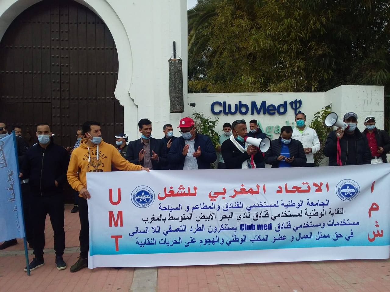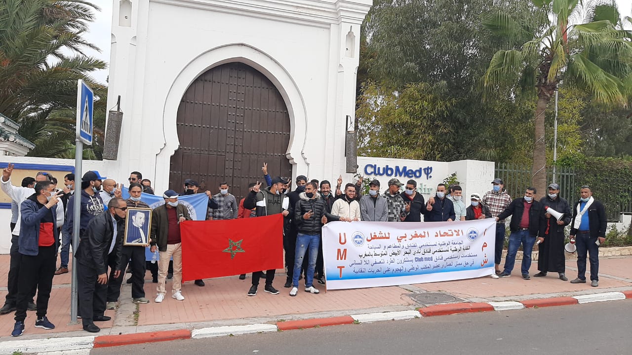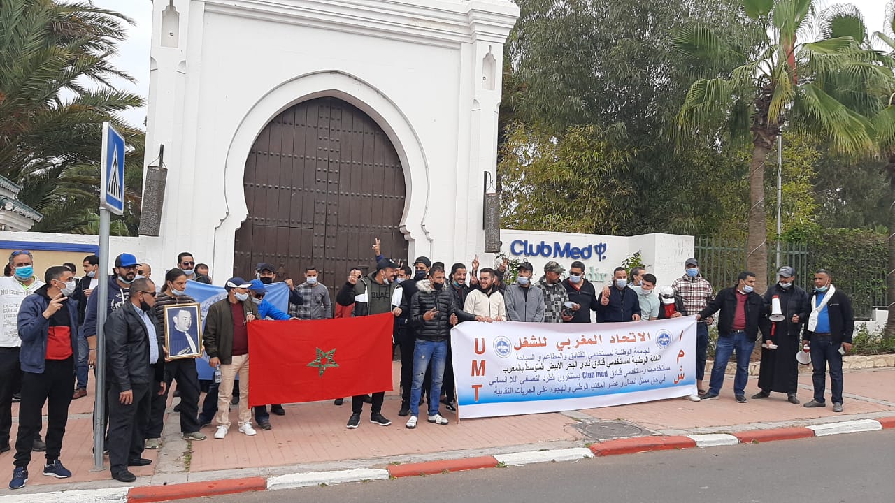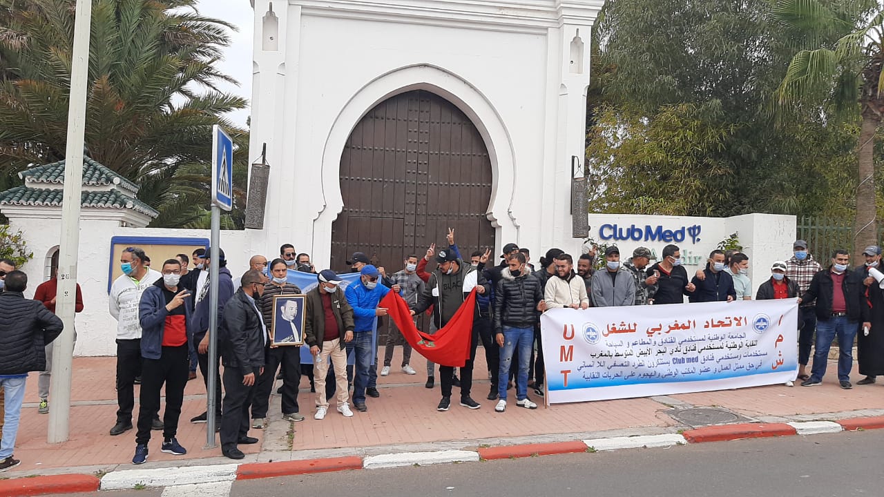 نظم مستخدمون وحدة فندقية فخمة بمدينة أكادير صباح اليوم الخميس 04 مارس، وقفة إحتجاجية أمام الفندق في إطار برنامج نضالي تم الإعلان بموجبه عن تنظيم وقفات احتجاجية اليوم أمام المؤسسة، من العاشرة صباحا إلى الثانية بعد الزوال مع إمكانية التصعيد في حالة عدم الاستجابة لمطالبهم.