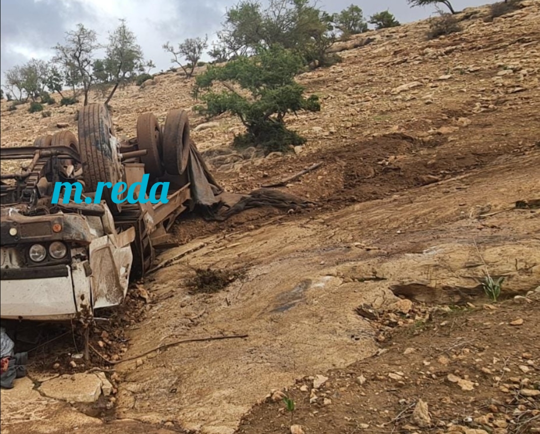مصادر شتوكة بريس أكدت أن سائق الشاحنة فقد التحكم في الفرامل لتنحرف عن مسارها واتقلبت به لتهوي أسفل الجبل على علو 110 متر ، ما ادى الى تحطمها بالكامل مسببتا في و فاة السائق و مرافقه في عين المكان و إصابه شخص ثالث بجروح وصفت بالخطيرة جدا نقل على اثرها صوب المستشفى الجهوي الحسن الثاني.