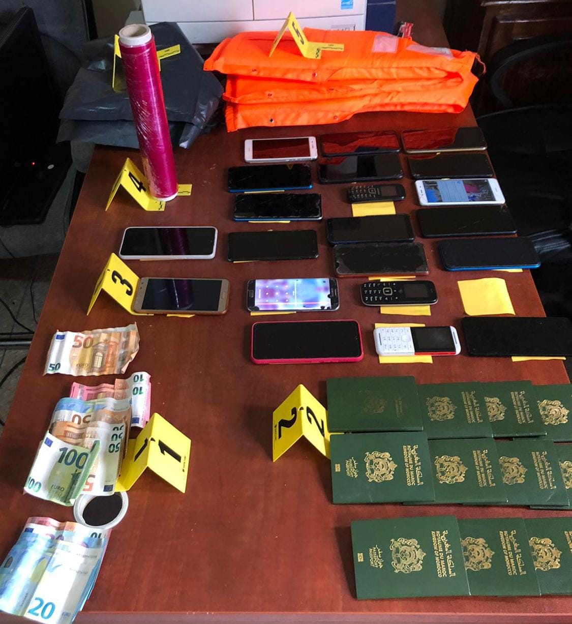 كما مكنت عمليات التفتيش التي باشرتها عناصر الشرطة القضائية في إطار هذه القضية من حجز سيارة خفيفة وسترة إنقاذ بحري ومجموعة من جوازات السفر والهواتف النقالة، فضلا عن مبلغ مالي من العملة الوطنية والأجنبية يشتبه في كونه من متحصلات هذا النشاط الإجرامي.