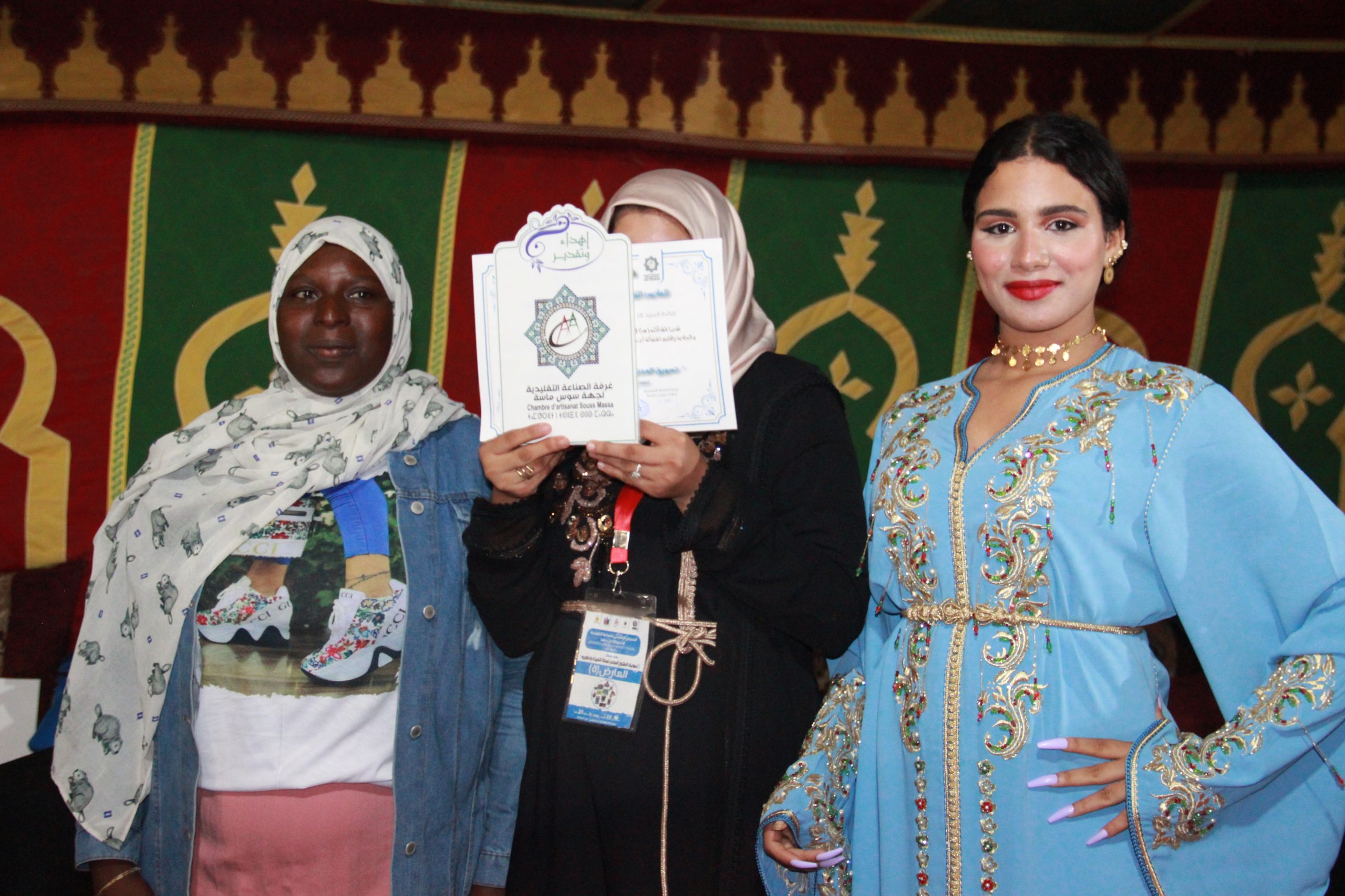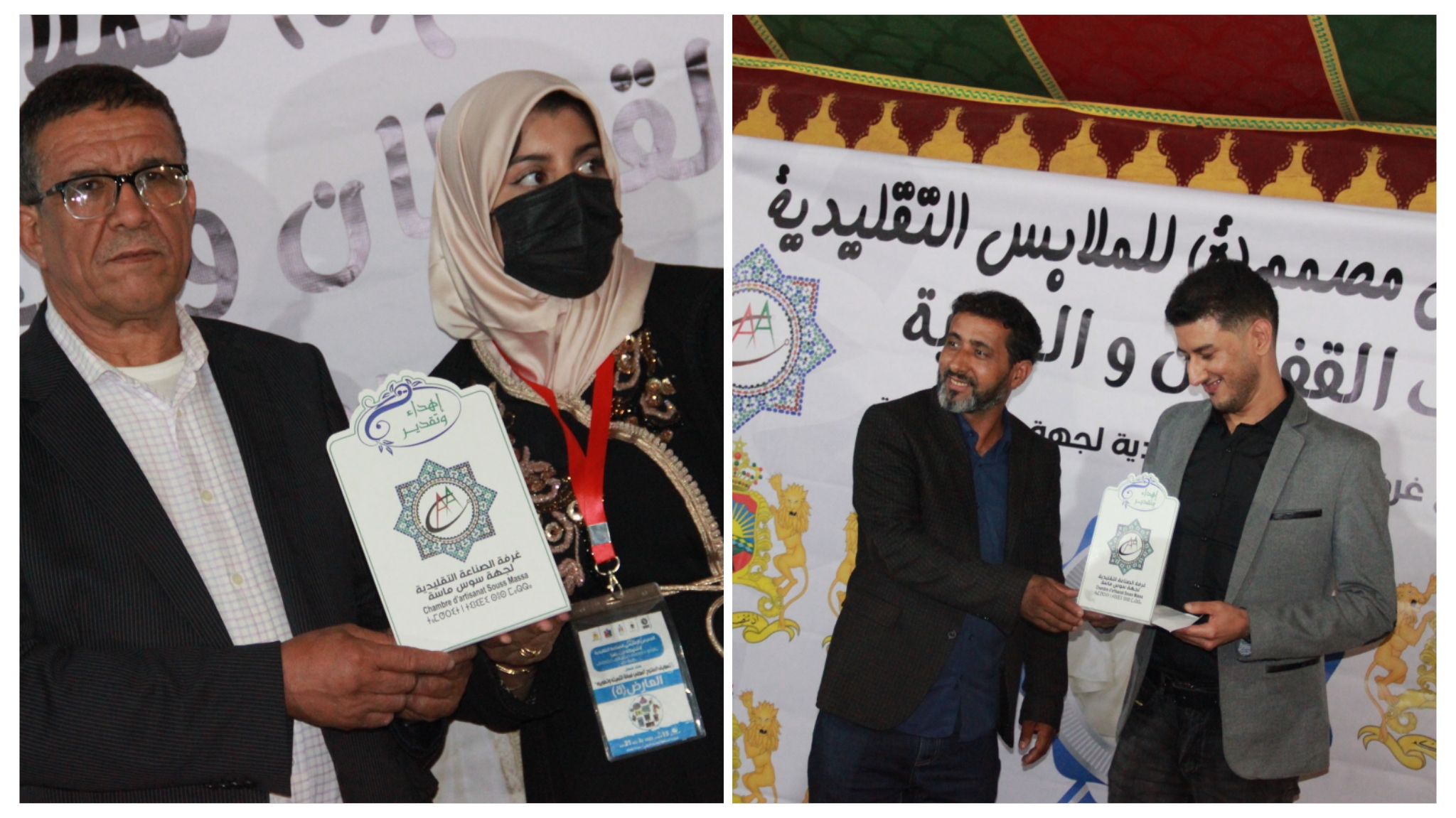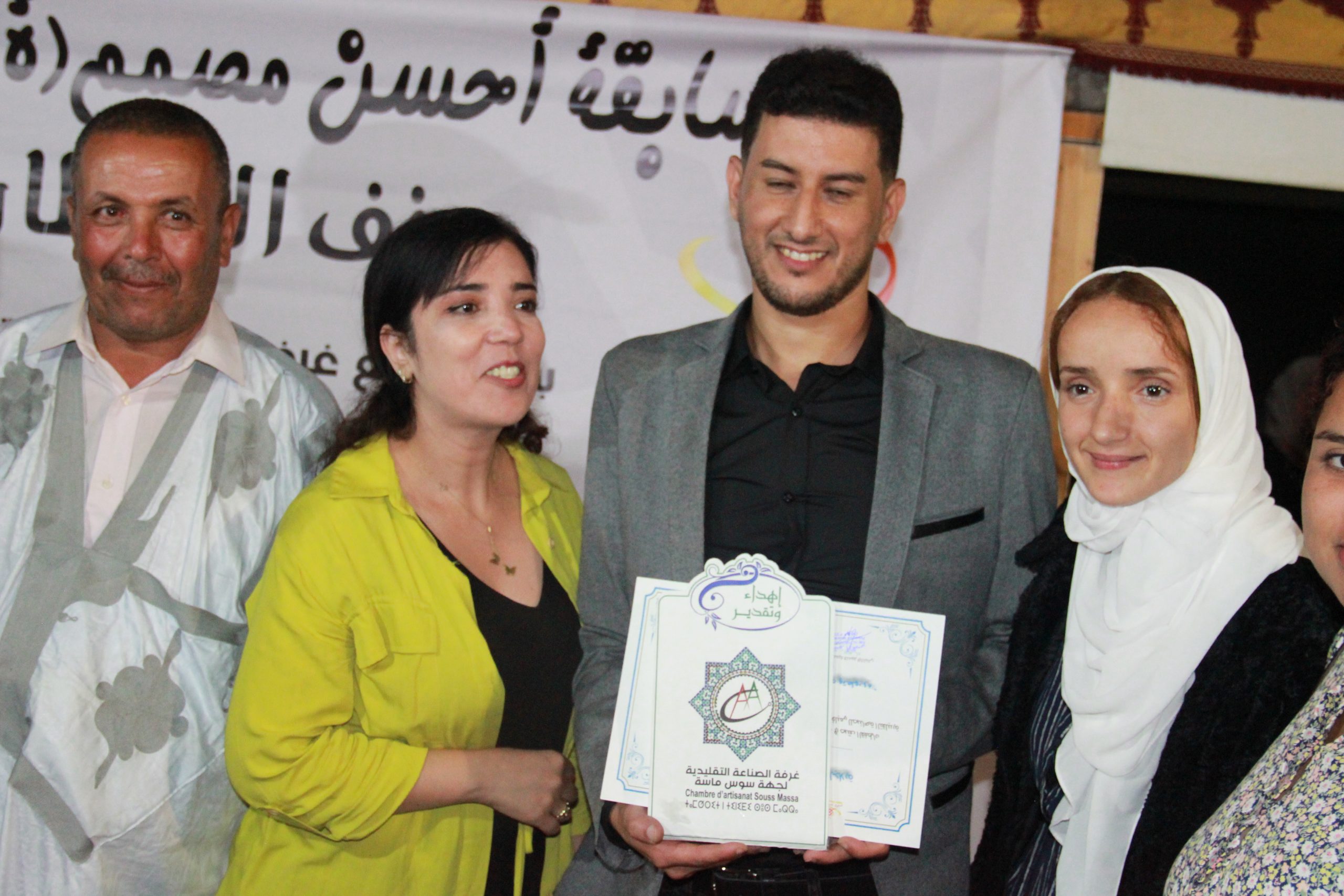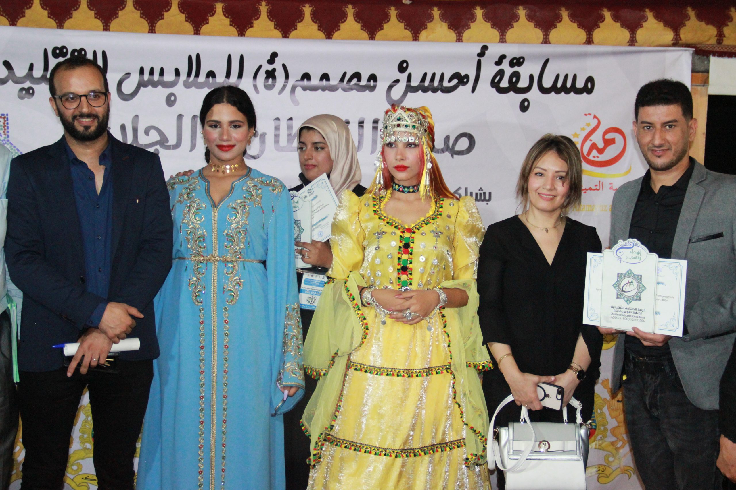 وعرفت المسابقة فوز كل من المصمم مروان ابحمان بسيدي وساي و لبنى من بيوكرى بجائزة احسن تصميم و ابداع حيت نالا العلامة الكاملة من لجنة تحكيم المكونة من اعضاء بالصفة من الغرفة و من امهر حرفي الخياطة بالجهة.