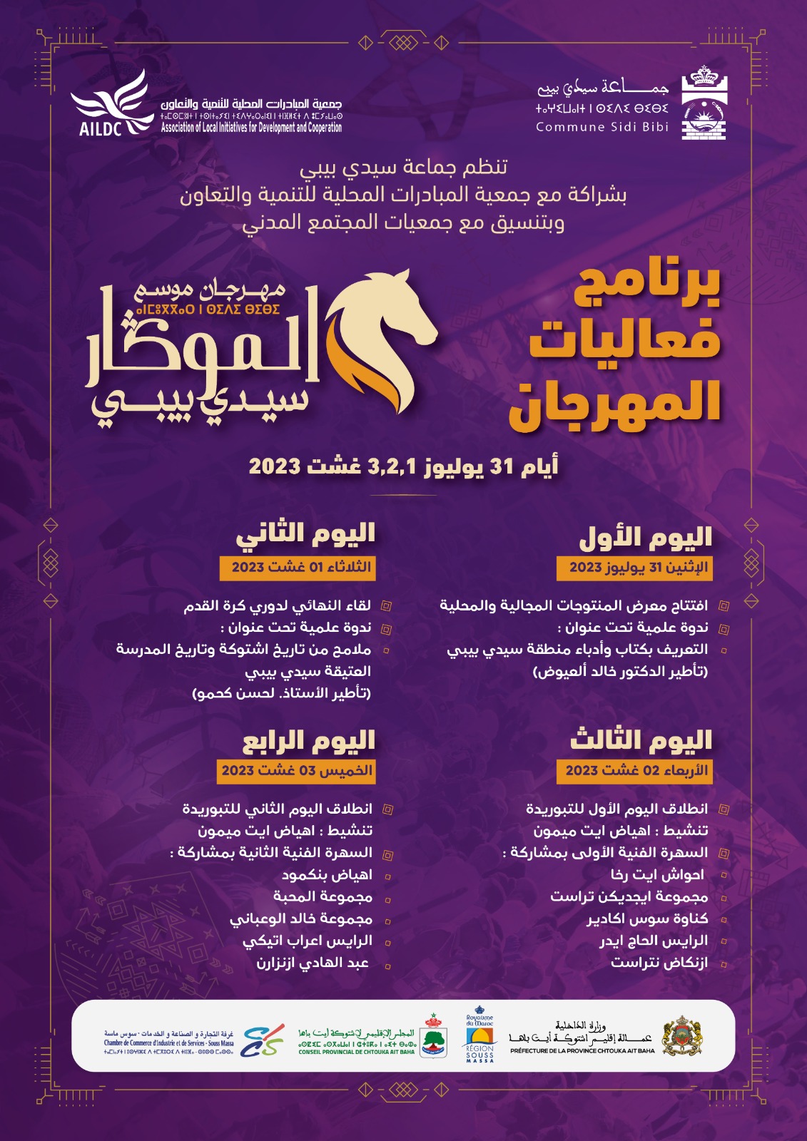 ويتولى هذه السنة، طاقم شاب من خِيرت شباب وشابات المنطقة، تنظيم المهرجان والإشراف على كل صغيرة وكبير فيه، حيث حرس المنظمون عل تخصيص برمجة غنية ومتنوعة لفقرات المهرجان وسهراته، من خلال وضع تصور جديد يجمع بين الثقافة والإقتصاد والفن للترويج للمنطقة.