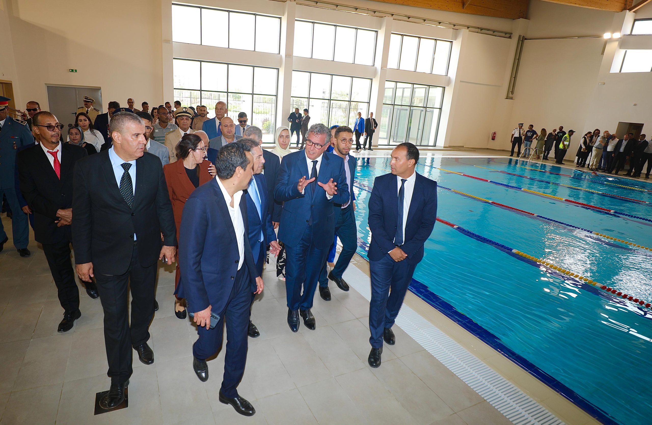 واختتم البرنامج بافتتاح المسبح نصف أولمبي بحي الهدى، الذي أقيم على مساحة متوسطة تبلغ 1500 متر مربع ومدرج بسعة 250 مقعدا، بالإضافة إلى منشآت ملحقة لضمان راحة المرتفقين والزوار.
