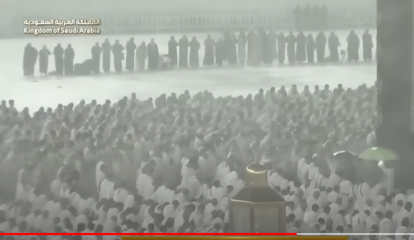 تداول ناشطو وسائل التواصل الاجتماعي مقطع فيديو يظهر المصلين يؤدون صلاة العشاء في الحرم المكي تحت هطول أمطار غزيرة على مكة المكرمة. الفيديو، الذي انتشر على نطاق واسع، أظهر صفوف المصلين وهم يسجدون وسط برك المياه المتجمعة على الأرض أمس يوم الاثنين.