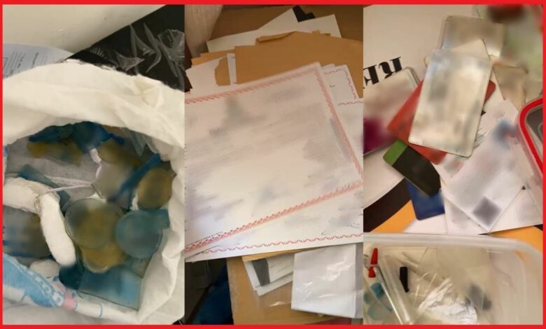 كما مكنت عملية التفتيش أيضا من حجز مجموعة من الأختام والمعدات المكتبية والسوائل الكيميائية، فضلا عن حواسيب وأجهزة للنسخ والطبع، وكذا إيصالات لتحويلات مالية يشتبه في كونها من متحصلات هذا النشاط الإجرامي.