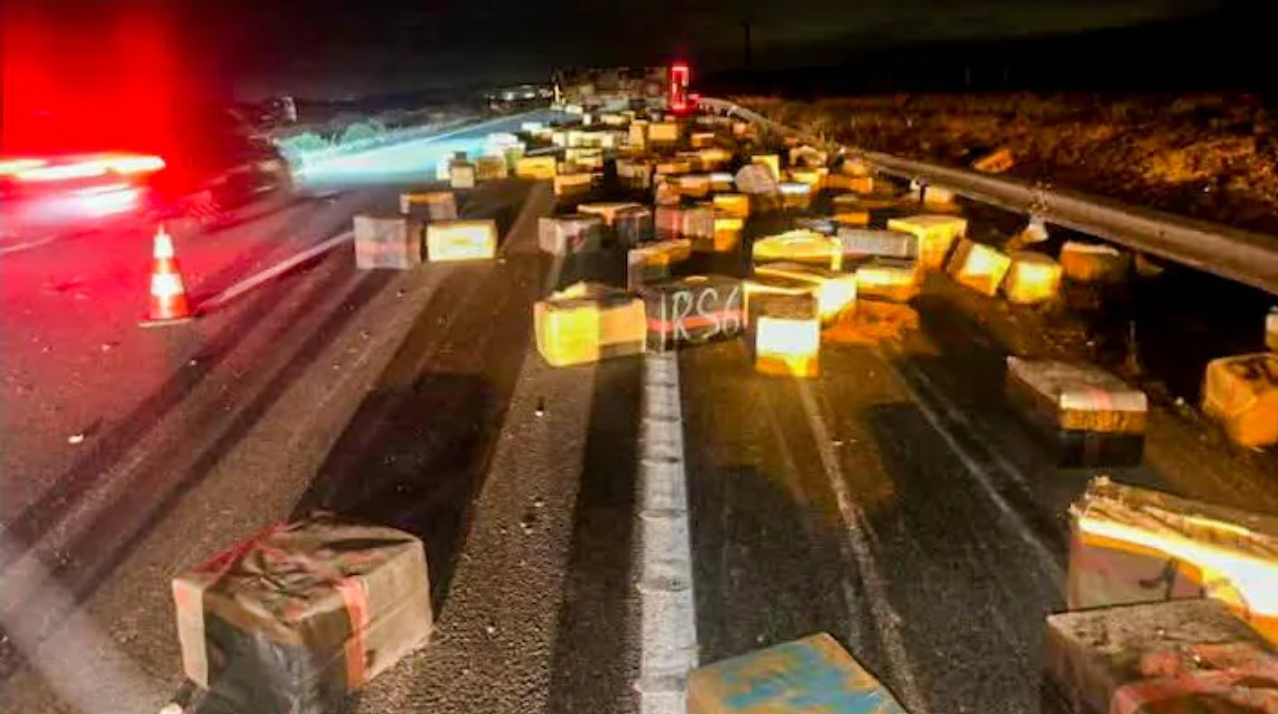 أفشل انقلاب شاحنة على الطريق السيار الرابط بين مكناس والخميسات، أول أمس الجمعة 17 يناير الجاري، عملية تهريب أطنان من الحشيش، عبارة عن حزم تناثرت على الطريق.