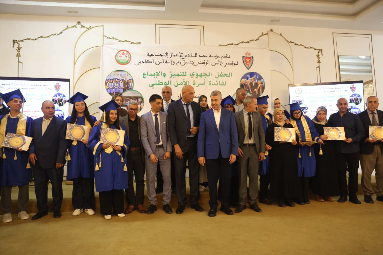 شهدت مدينة أكادير، اليوم السبت 29 نونبر الجاري، تنظيم الحفل الجهوي للتميّز لفائدة أسرة الأمن الوطني، وهو موعد سنوي تشرف عليه مؤسسة محمد السادس للأعمال الاجتماعية لموظفي الأمن الوطني، تنفيذا لتوجيهات السيد المدير العام للأمن الوطني ومراقبة التراب الوطني الرامية إلى تعزيز البعد الاجتماعي وتشجيع التفوق والتميز داخل أسرة الأمن.