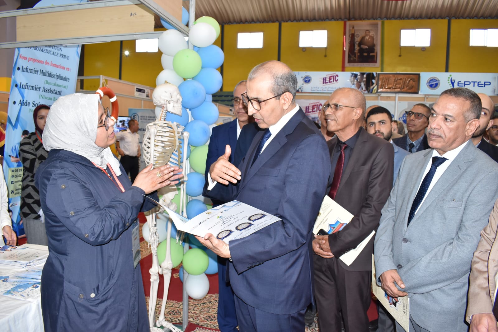 وقد أشرف عامل الإقليم السيد محمد سالم الصبتي، صباح اليوم الخميس، على الافتتاح الرسمي لهذه التظاهرة التربوية الهامة، حيث تمت زيارة اروقة المؤسسات والمعاهد المشاركة، بحضور متميز لمؤسسات التعليم العالي العمومي، جامعة ابن زهر ومختلف الكليات والمعاهد التابعة لها ، والأقسام التحضيرية ومؤسسات التعليم الخصوصي العالي ومؤسسات التكوين المهني العمومية والخصوصية ومختلف مؤسسات التكوين والوكالة الوطنية لانعاش التشغيل والكفاءات وعدد من المراكز المهتمة بالدراسة بالخارج.ومعاهد التكوين المهني التقني وغيرها من المتدخلين في التكوين والتوجيه.