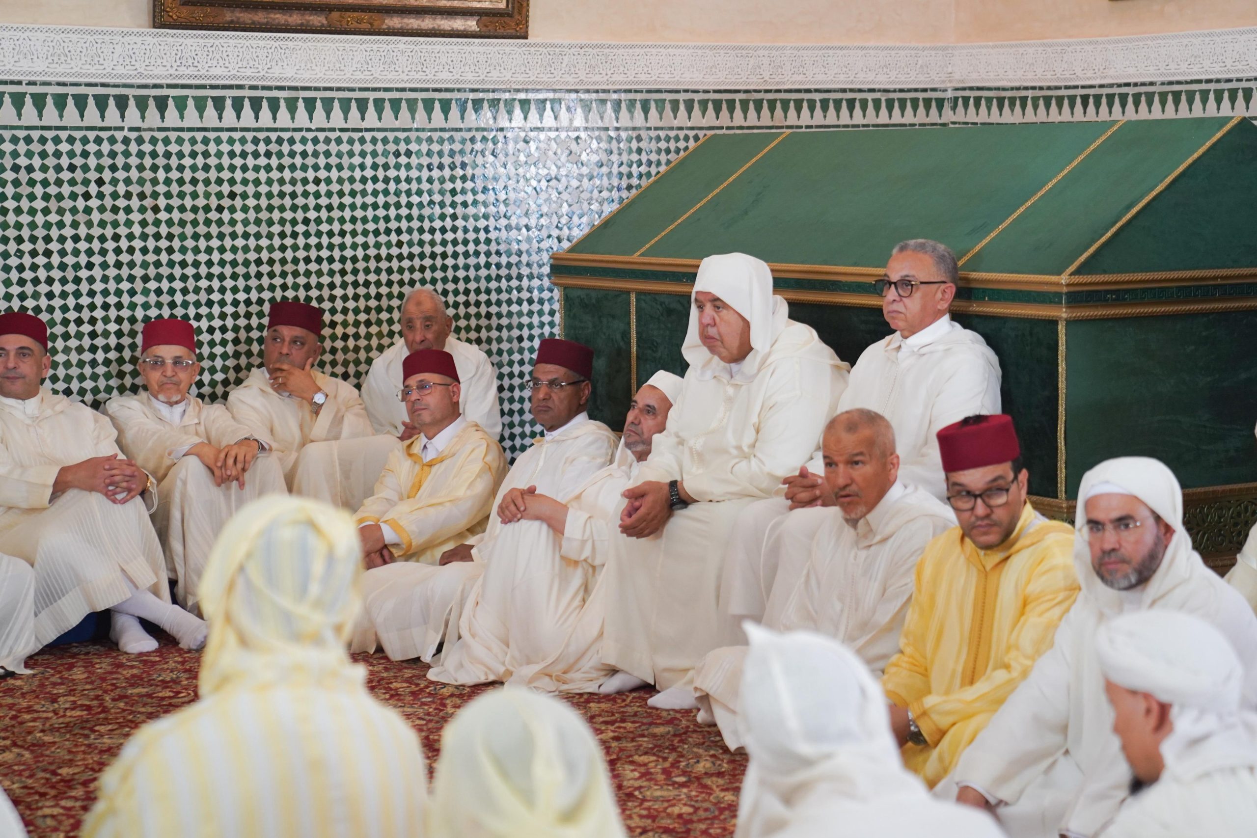 هذه المناسبة الدينية، التي حضرها على الخصوص رؤساء المصالح الأمنية الجهوية والإقليمية والمنتخبون ورؤساء المصالح القطاعية وفعاليات مدنية وحشد من أئمة وطلبة المدارس العتيقة، تميزت بقراءة برقية الولاء المرفوعة إلى السدة العالية بالله، وبرفع أكف الضراعة والدعاء بالنصر والتمكين لجلالة الملك محمد السادس نصره الله، ولصاحب السمو الملكي الأمير مولاي الحسن بالتوفيق والسداد، وأن يشد عضده بشقيقه مولاي رشيد وباقي الأسرة الملكية الشريفة، والدعاء بالترحم على فقيدي العروبة والإسلام المغفور لهما الملكين الراحلين محمد الخامس والحسن الثاني طيب الله ثراهما.