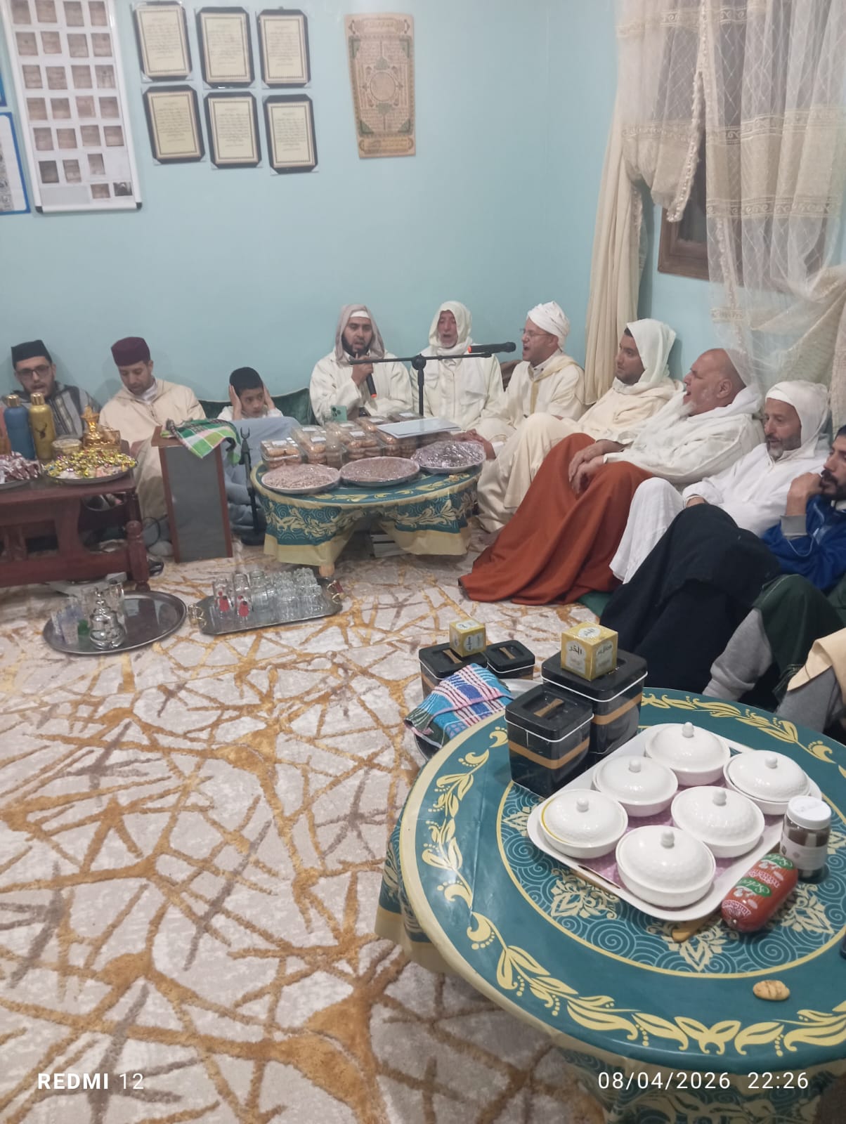 وتضمن برنامج اللقاء قراءة جماعية مرتلة للذكر الحكيم، حيث توحدت الأصوات في تلاوة خاشعة عكست المنهجية العلمية والروحية التي تقوم عليها هذه الزاوية. كما تخللت هذه الأمسية وصلات من الأمداح النبوية الشريفة، التي تستحضر شمائل المصطفى ﷺ، مما يضفي على المكان صبغة من الوقار والسكينة تليق بهذا المحفل السنوي.